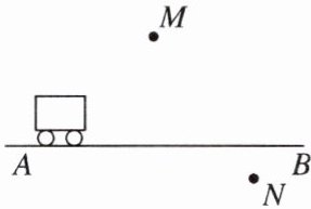②作线段MN的垂直平分线l,交直线AB于C点,则C点即为所求。