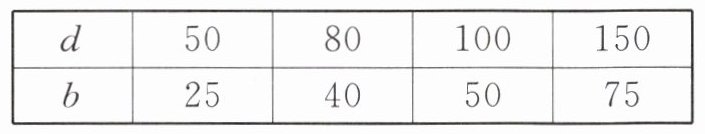 2. 下面的表格列出了一个实验的统计数据,表示将皮球从高处落下时,弹跳高度$b与下降高度d$的关系,下面能表示这种关系的式子是()