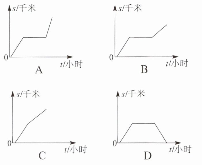 4. 一艘轮船在长江航线上往返于甲、乙两地,若轮船在静水中的速度不变,轮船先从甲地顺水航行到乙地,停留一段时间后,又从乙地逆水航行返回到甲地,设轮船从甲地出发后所用的时间为$t$(小时),航行的路程为$s$(千米),则$s与t$的图象大致是()