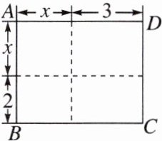 11. 如图,原有一边长为$x$m的正方形草坪,现将其一边拓宽3m,另一边拓宽2m,求所得长方形草坪ABCD的面积.