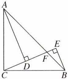解:△ADC≌△ADF,△ADC≌△CEB.若选择△ADC≌△ADF,理由:因为AD平分∠FAC,所以∠CAD=∠FAD.因为AD⊥CF,所以∠ADC=∠ADF=90°.在△ADC和△ADF中,$\begin{cases} \angle CAD = \angle FAD \\ AD = AD \\ \angle ADC = \angle ADF \end{cases}$,所以△ADC≌△ADF(ASA).