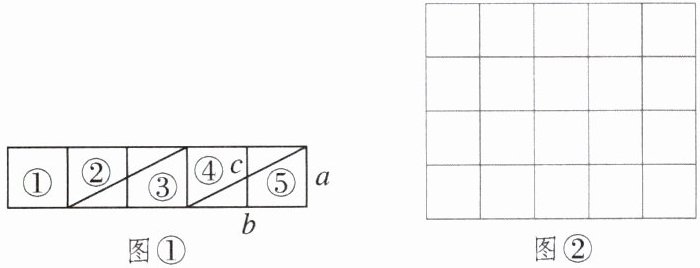 (1)如图①是由有5个边长为1的正方形组成的,把它按图中的分割方法分割成五部分后可拼接成一个面积为5的大正方形(内部的粗实线表示分割线),请你在图②的网格中画出拼接成的大正方形,并在大正方形内部标注出五部分的序号;