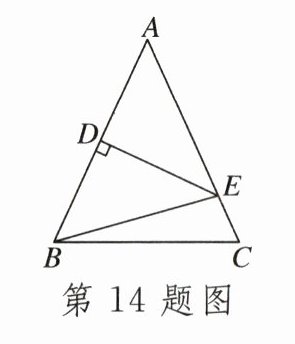 14.如图,在$\triangle ABC$中,$AB= AC$,AB的垂直平分线交边AB于点D,交边AC于点E.若$\triangle ABC与\triangle EBC$的周长分别是40cm,24cm,则$AB= $______cm.