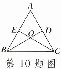 10.如图,在$\triangle ABC$中,$AB= AC,∠ABC,∠ACB$的平分线BD,CE相交于O点,且BD交AC于点D,CE交AB于点E.某同学分析图形后得出以下结论:①$\triangle BCD\cong \triangle CBE$;②$\triangle BAD\cong \triangle BCD$;③$\triangle BAD\cong \triangle CAE$;④$\triangle BOE\cong \triangle COD$;⑤$\triangle ACE\cong \triangle BCE$.上述结论一定正确的是 ()