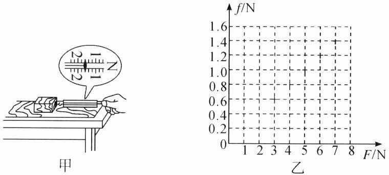 (3)改变木块上所加砝码的个数进行多次实验,记录的数据如表所示,请根据表中的数据,在图乙中画出滑动摩擦力随压力大小变化的关系图像。