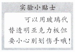 (1)小优用长尾夹分别夹住透明亚克力板底部两端,将透明亚克力板竖立在水平桌面上,接着将蜡烛和透明玻璃杯分别放置在透明亚克力板两侧,如图1所示。