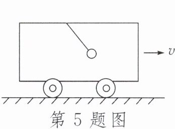 5. 超速和超载是造成重大交通事故的主要原因。当汽车______(选填“超速”或“超载”)时,它的惯性将变大。在一辆行驶的汽车车厢顶部挂着一个小球,当出现如图所示的情景时,汽车在向右做______(选填“加速”“匀速”或“减速”)运动。