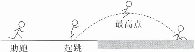 2. 小明在进行跳远比赛时,需要先助跑一段距离,如图所示,这是因为小明具有______,利用好后可以取得更好的成绩;若起跳到最高点后,小明所受的外力全部消失,则他将______(选填“沿水平方向做匀速直线运动”“竖直下落”或“静止”)。