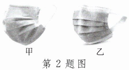2. 装修结束后,小明需要打扫卫生,为了防止灰尘进入口鼻,小明准备了两款口罩,如图所示,其中____(选填“甲”或“乙”)口罩佩戴时耳朵会更舒服,原因是它与耳朵的接触面大,对耳朵产生的压强____(选填“大”或“小”)。