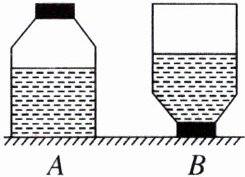 4. 将未装满水且密闭的矿泉水瓶先正立放置在水平桌面上,再倒立放置,如图所示。两次放置时,水对瓶底和瓶盖的压强分别为$p_{A}和p_{B}$,水对瓶底和瓶盖的压力分别为$F_{A}和F_{B}$,则()