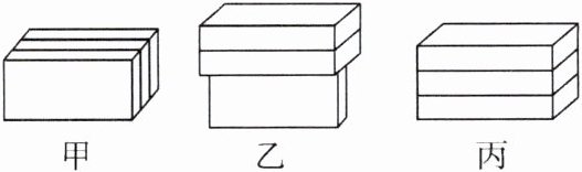 1. 如图所示,每块砖的质量相等,长、宽、高分别是40 cm、20 cm、10 cm,以三种方式摆放在水平地面上。地面受到压强$p_{甲}$、$p_{乙}$、$p_{丙}$的大小关系是()