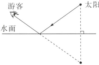 15.如图甲所示为某游客拍摄的照片,可以看见在空中和水中各有一轮太阳,请在图乙所示的简图中画出该游客看见水中太阳的光路图。