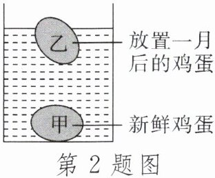 2. 将新鲜度不同的甲、乙两鸡蛋放入水中,静止时甲沉底,如图所示,下列说法正确的是 ()