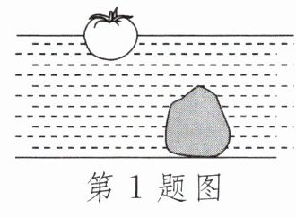 1. 把一块石头和一个西红柿($V_{石头}>V_{西红柿}$)同时放入水中,它们静止时西红柿漂在水面上,而石头沉入了水底,如图所示。石头和西红柿在水中受到的浮力的大小相比较 ()