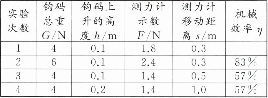(2)第1次实验测得的机械效率为____(结果精确到1%)。