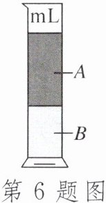 6.如图所示为演示液体扩散现象的实验装置。最初两种液体A和B的界面十分清晰,几天之后,两种液体混合均匀。则: