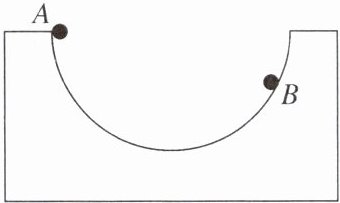 6. 如图所示是一个左右对称的凹形槽,将小球从A点由静止释放,运动到右侧最高的位置是B点。若小球在A点时的重力势能为80J,在B点时的重力势能为60J,则小球由A点运动到B点的过程中转化为内能的那部分机械能的大小为______J。