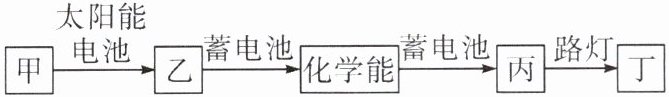 2. 某路灯照明系统的太阳能电池白天将太阳能转化为电能,对蓄电池充电,晚上蓄电池对路灯供电。对如图方框中能量形式的判断正确的是()