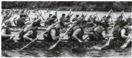 2. 如图所示是端午节赛龙舟时的情景,当运动员向后划桨时,龙舟就向前行进,说明力能改变物体的____;当运动员停止划桨后,龙舟还能继续前进一段距离,这是因为龙舟具有____。