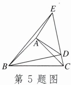 5.如图,在$\triangle ABC$,$\triangle ADE$中,$\angle BAC = \angle DAE = 90^{\circ}$,$AB = AC$,$AD = AE$,$C$,$D$,$E$三点在同一条直线上,连接$BD$,$BE$,以下四个结论:①$BD = CE$;②$BD \perp CE$;③$\angle ACE + \angle DBC = 45^{\circ}$;④$BE = AD + AB$,其中正确的结论是____(填序号).