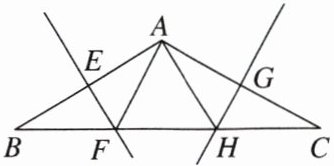 7.如图,在$\triangle ABC$中,$\angle BAC = 120^{\circ}$,$AB的垂直平分线交AB于点E$,交$BC于点F$,$AC的垂直平分线交AC于点G$,交$BC于点H$.