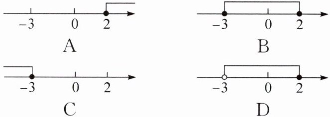 2. 不等式组$\left\{\begin{array}{l} \frac {1}{3}x+1>0,\\ 2-x\geqslant 0\end{array}\right. $的解集在数轴上可表示为()