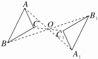 4. 如图,$\triangle ABC与\triangle A_1B_1C_1关于点O$成中心对称,下列说法:①$∠BAC = ∠B_1A_1C_1$;②$AC = A_1C_1$;③$OA = OA_1$;④$\triangle ABC与\triangle A_1B_1C_1$的面积相等,其中正确的有()