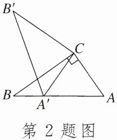2.如图,在$Rt\triangle ABC$中,$∠ACB= 90^{\circ}$,$∠ABC= 30^{\circ}$,将$\triangle ABC绕点C顺时针旋转至\triangle A'B'C$的位置,使得点$A'恰好落在AB$上,则旋转角度为 ()