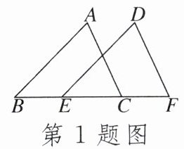 1.如图,将$\triangle ABC沿着由点B到点E$的方向,平移到$\triangle DEF$,已知$BC= 5$,$EC= 3$,点$E在BC$上,那么平移的距离为 ()