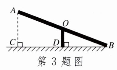 3. 如图,跷跷板$AB的支柱OD经过它的中点O$,且垂直于地面$BC$,垂足为点$D$,$OD = $50 cm,当它的一端$B$着地时,另一端$A离地面的高度AC$为()