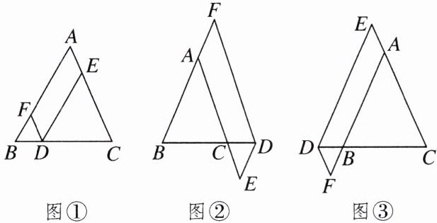 (2)图②中:AC + DE = DF.图③中:AC + DF = DE.