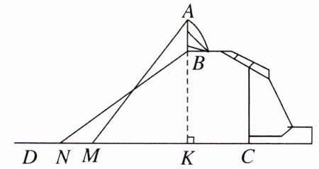 |测量方法|将竹竿HE垂直固定在地面CD上,小明从竹竿上的F点处观察篮板底部B点,用测角仪测量视线FB与竹竿HE的夹角∠HFB的度数,接着将观察点沿着竹竿向上移动到G点,使得从G点观察篮板顶部A点的视线GA与竹竿HE的夹角∠HGA的度数恰好等于∠HFB的度数,在竹竿上标注G点的位置,测量GF的长度。|将一根竹竿靠在篮板AB上,竹竿的一端与篮板顶部A点重合,竹竿另一端点落在地面K点正前方的点M处,在地面上标注M点的位置,接着将竹竿与A点重合的一端沿着篮板下滑,直到该端点与篮板底部B点重合,此时,另一端点落在地面K点正前方的点N处,在地面上标注N点的位置,测量KM和KN的长度。|