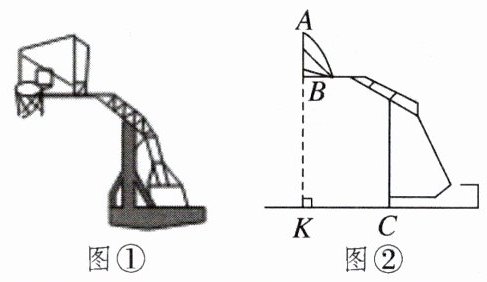 图①是某校篮球架实物图,图②是篮球架的侧面示意图,篮板侧边AB垂直于地面。八年级的“综合与实践”兴趣组将分成两个小组开展测量篮球架篮板AB长度的实践活动。在不便于直接测量的情况下,两个小组设计了如下测量方案: