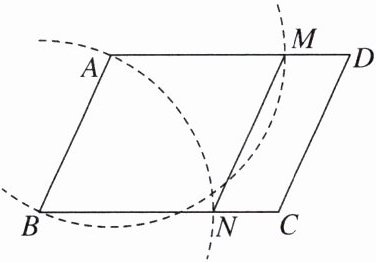 解答:如图,分别以点A,B为圆心,AB长为半径画弧,交BC于点N,交AD于点M,连接MN,四边形ABNM即为所作.$\therefore AM = AB = BN$.$\because$四边形ABCD是平行四边形,$\therefore BN// AM$.又$\because BN = AM$,$\therefore$四边形ABNM是平行四边形.$\because AM = AB$,$\therefore$四边形ABNM是菱形.