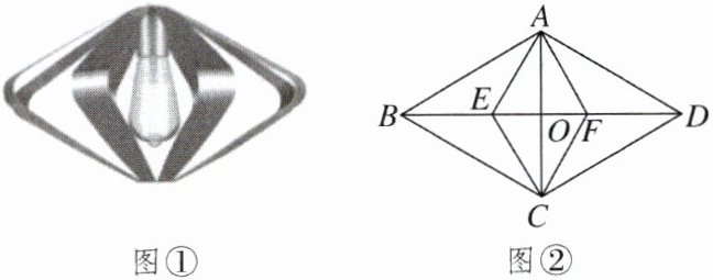 8. 小颖新房买了一盏简单而精致的吊灯(图①),其正面的平面图如图②所示,四边形ABCD是一个菱形外框架,对角线AC,BD相交于点O,四边形AECF是其内部框架,且点E,F在BD上,BE= DF.