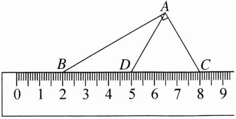 3. 如图,在$\triangle ABC$中,$\angle BAC = 90^{\circ}$,$D为边BC$的中点,顶点$B$,$C分别对应刻度尺上的2cm和8cm$,求$AD$的长.