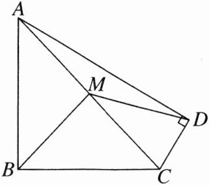 解答:$\because \angle ADC = 90^{\circ}$,$M是AC$的中点,$\therefore DM是Rt\triangle ACD斜边AC$上的中线.$\therefore DM = AM = CM = \frac{1}{2}AC$.同理可证$BM = AM$,$\therefore BM = DM$.