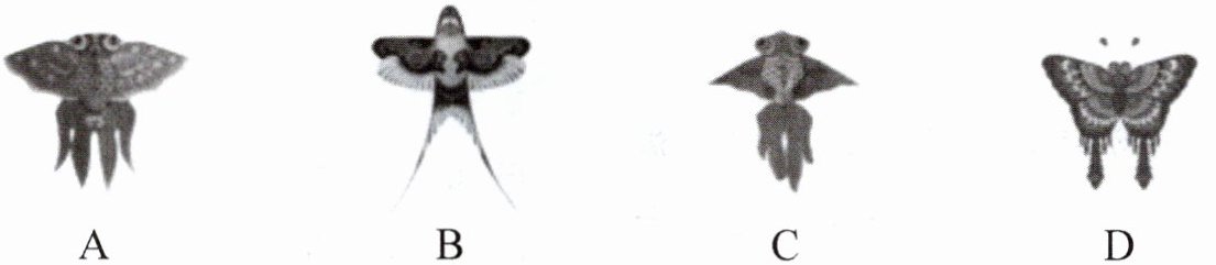 同学们查询资料后了解到,风筝的外观形状多种多样,各具特色。下列是几种常见的风筝,其中不是轴对称图形的是______。