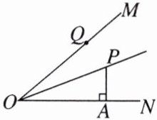 9.如图,OP平分∠MON,PA⊥ON于点A,点Q是射线OM上的一个动点。若PA= 2,则PQ的最小值为____。