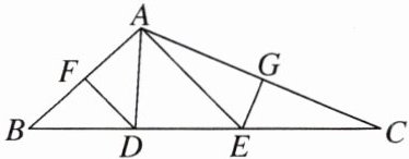 5.如图,在△ABC中,∠BAC= 110°,AB的垂直平分线DF交BC于点D,AC的垂直平分线EG交BC于点E,BC= 10cm。求: