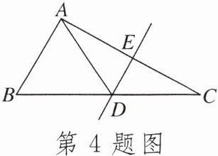 4.如图,在△ABC中,DE是AC的垂直平分线,AE= 6cm,△ABD的周长为26cm,则△ABC的周长为____cm。