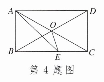 4.如图,在矩形ABCD中,对角线AC与BD相交于点O,$\angle AOB= 60^{\circ}$,AE平分$\angle BAD$,AE交BC于点E,则$\angle BOE$的大小为______.