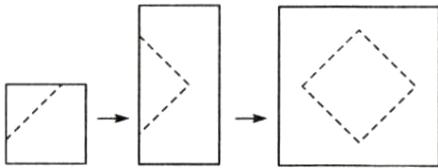 (1)这种折法,需沿着平行于小正方形的对角线的线剪,例如: