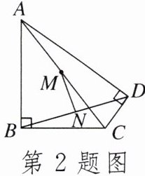 2.如图,已知∠ABC= ∠ADC= 90°,M,N分别是AC,BD的中点,AC= 10,BD= 8,则MN的长为(提示:连接BM,DM) ()