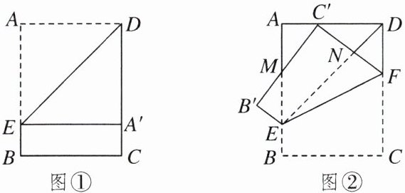 (2)将图①中的矩形纸片ABCD沿过点E的直线折叠,点C恰好落在AD上的点$C'$处,点B落在点$B'$处,得到折痕EF,$B'C'$交AB于点M,如图②.线段$MC'$与ME是否相等? 若相等,请给出证明;若不相等,请说明理由.