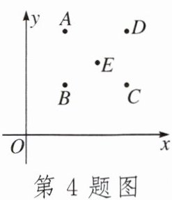 4. 如图,若点$E的坐标为(m,n)$,则$(m-2,n+2)$对应的点可能是点______(填“A”“B”“C”或“D”)。