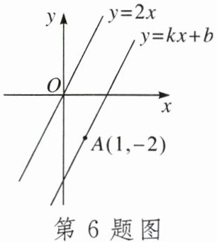 6. 如图,一次函数$y = kx + b的图象与正比例函数y = 2x的图象平行且经过点A(1, - 2)$,则$kb = $______.