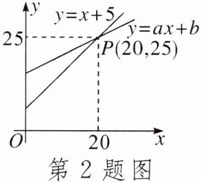 2. 数形结合是解决数学问题常用的思想方法.如图,直线$y = x + 5和直线y = ax + b相交于点P$,根据图象可知,方程$x + 5 = ax + b$的解是()