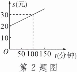2.通讯公司推出一种每月话费的套餐,其用户应缴费用s(元)与通话时间t(分钟)之间的关系如图所示,若某用户缴费40元,则其通话时间为()