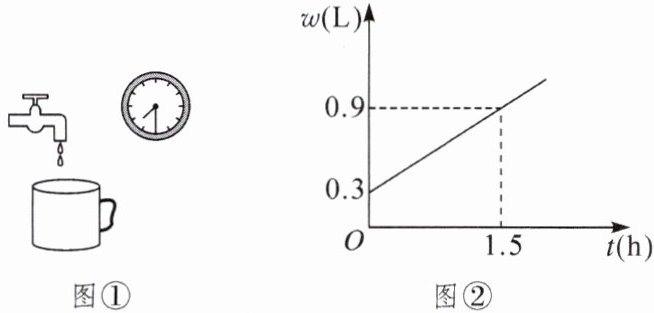 6.水龙头关闭不严会造成滴水,用可以显示水量的容器做如图①的试验,探究容器内盛水量w(L)与滴水时间t(h)的关系,并根据试验数据绘制出如图②的函数图象,结合图象解答下列问题.